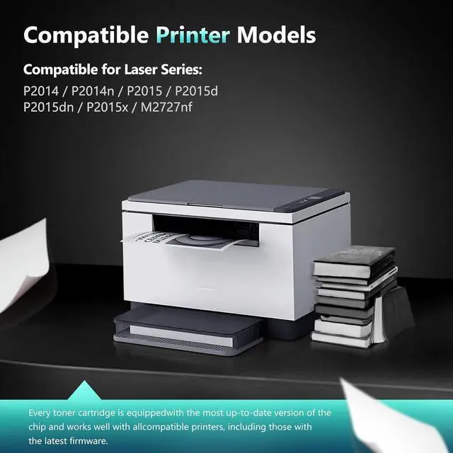 This cartridge works with: Laser P2014 P2014n P2015 P2015d P2015dn P2015x; Laser M2727nf Multifunction Printer
