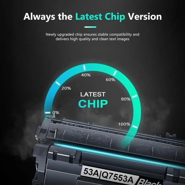 What's in the box: 2 new 53A Black High Yield for with Chip Toner Cartridge (also compatible with 53X Q7553X Toner Cartridge)