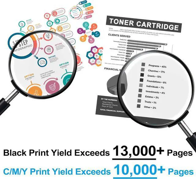 High Page Yield: Up to 13,000 pages per Black, 10,000 pages per Color cartridges at 5% coverage (Letter/A4)