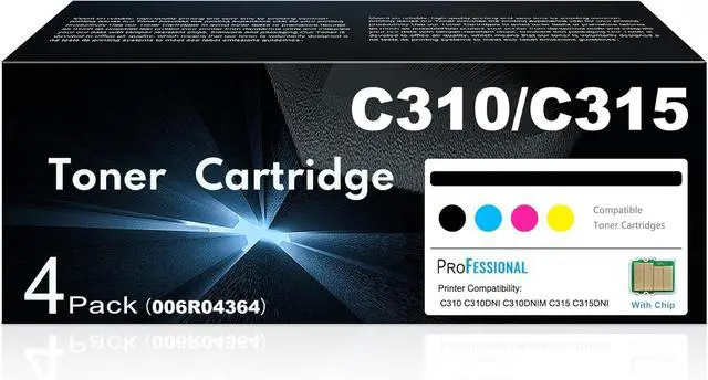 What's in the package: Compatible with Xerox C310 C315 Toner Cartridge 4-Pack ; 006R04364 black x1, 006R04365 yellow x1, 006R04366 cyan x1, 006R04367 magenta x1
