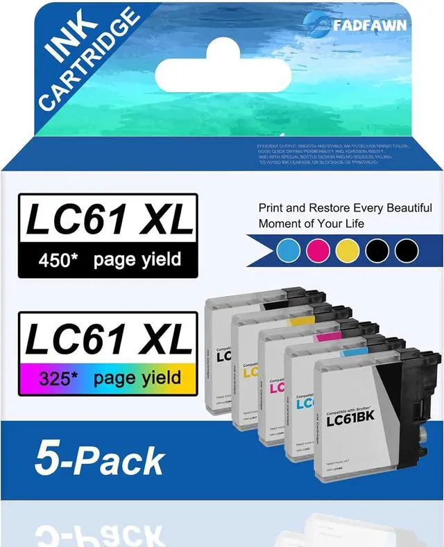 5-Pack LC61 Ink Cartridge Set: Includes of 2 Black, 1 Cyan, 1 Magenta, and 1 Yellow LC61 ink cartridges. Enjoy the convenience of replacing all colors at once for uninterrupted, vibrant printing