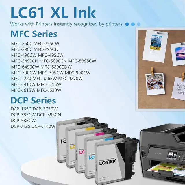 Printer Model Compatibility: Our LC61 ink cartridges are engineered to work seamlessly with a wide range of Brother printers, including popular models like DCP-165C DCP-375CW DCP-385CW DCP-395CN DCP-585CW DCP-J125 DCP-J140W MFC-250C MFC-255CW MFC-290C MFC-295CN MFC-490CW MFC-495CW MFC-5490CN MFC-5890CN MFC-5895CW MFC-6490CW MFC-6890CDW MFC-790CW MFC-795CW MFC-990CW MFC-J220 MFC-J265W MFC-J270W MFC-J410W MFC-J415W MFC-J615W MFC-J630W