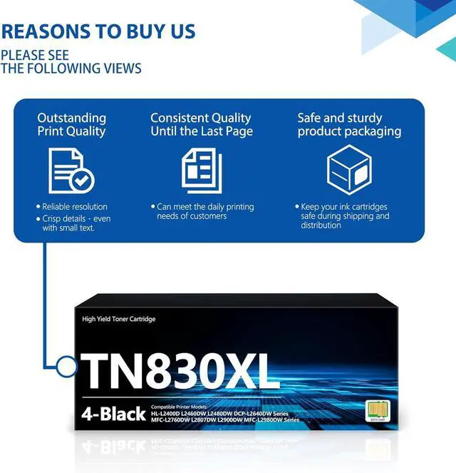 High Quality: Our TN-830XL Toner Cartridge is manufactured to meet the standard specifications and provide the printing experience vital for your printing productivity