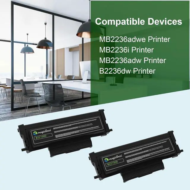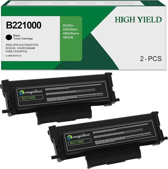 Package Includes: 2-Pack B2236 B221000 High Yield Black Toner Cartridge