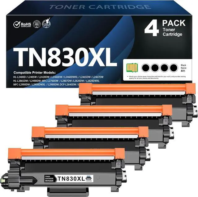 In this Package: 4 new TN830XL Black Toner Cartridges