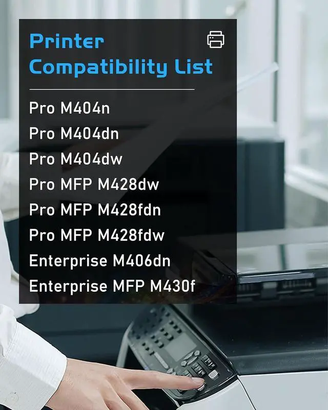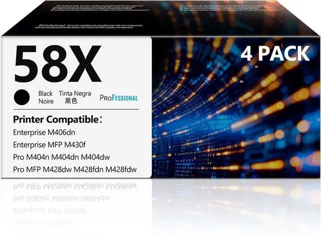 Printer Compatibility: Compatible with the 58X black toner cartridge (CF258X) for use with Pro M404, M404n, M404dn, M404dw, Pro MFP M428, M428dw, M428fdw, M428fdn, Enterprise M430f and M406dn