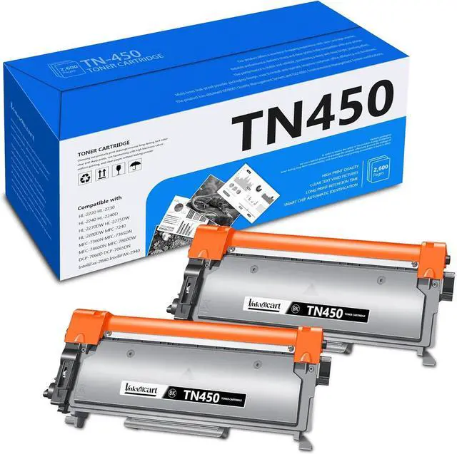 High Page Yield: Up to 2,600 pages per TN 450 TN-450 Black Toner Cartridge (at 5% coverage, Letter/A4)