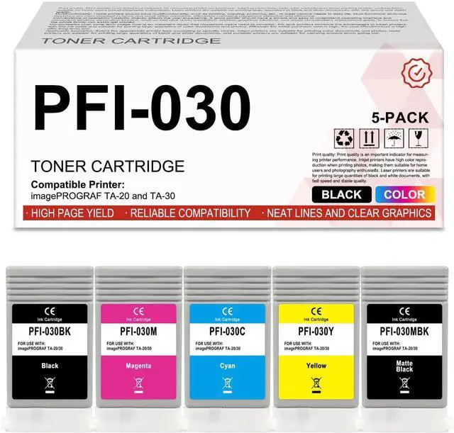 • Contents: 5 Pack of PFI-030 Ink Cartridge (Matte Black / Black / Cyan / Magenta / Yellow)