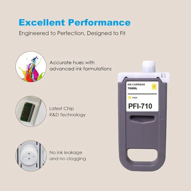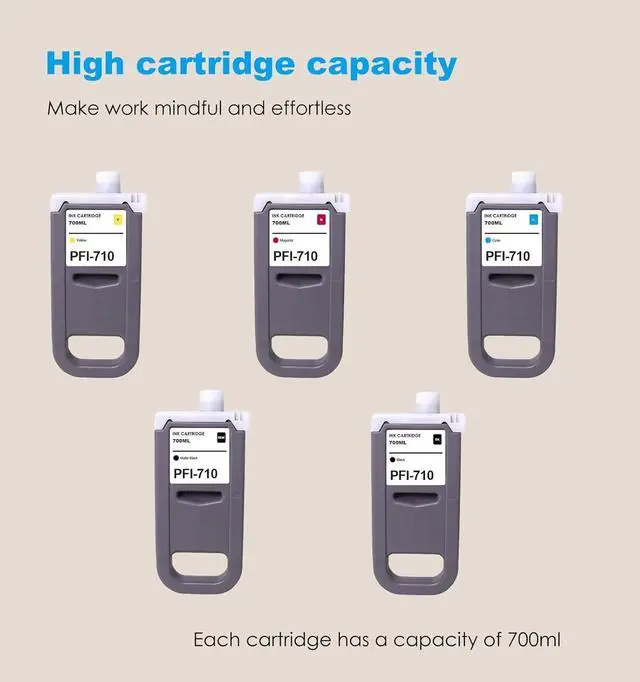 High Page Yield: Up to 700ml per PFI-710 ink tank, totally 3500ml, extra high capacity PFI-710 ink tanks