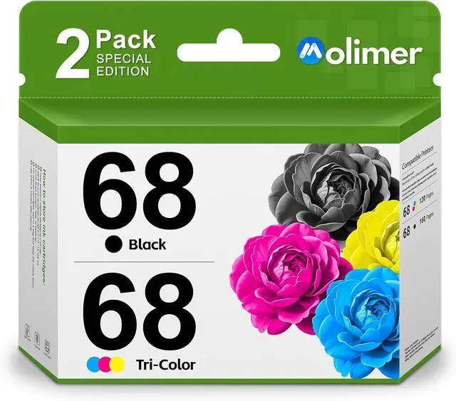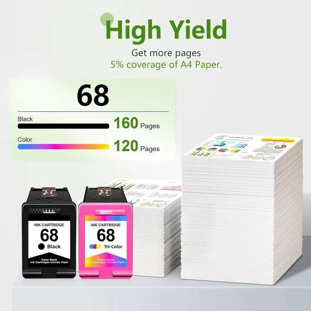 Each 68 ink cartridges combo pack Advanced printing technology ensures that every sheet of paper is rendered with clear, sharp images and text, Vibrant colours and deep blacks