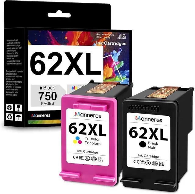 Package contents: 2 Pack-(62XL Tri-color / 62XL Black) Ink Cartridges