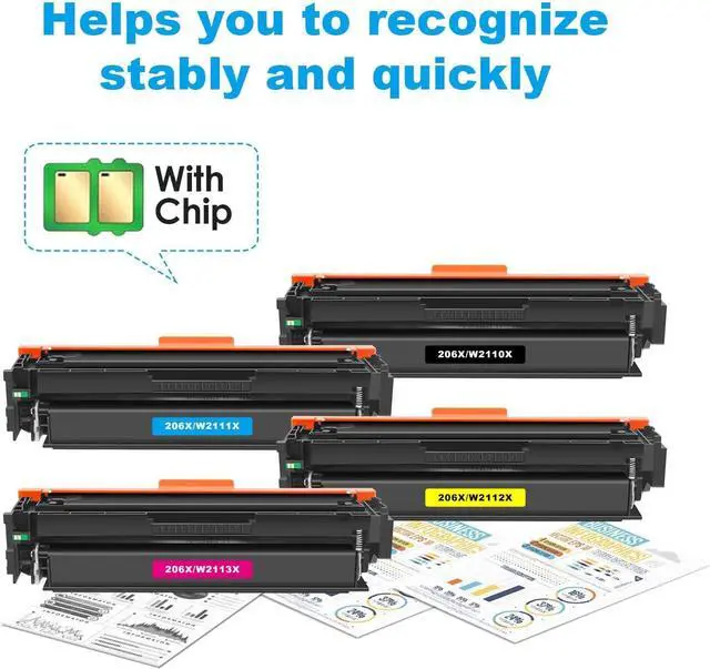 Packing List: 4 Pack Replacement for 206X Toner Cartridges (Black Cyan Magenta Yellow)