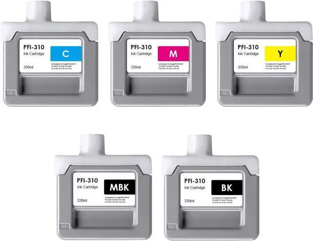 Included items: 1 Matte Black ( PFI 310mbk ), 1 Black ( PFI 310bk ), 1 Cyan ( PFI 310c ), 1 Magenta ( PFI 310m ), 1 Yellow ( PFI 310y ) Ink Cartridges (total 5 pack)