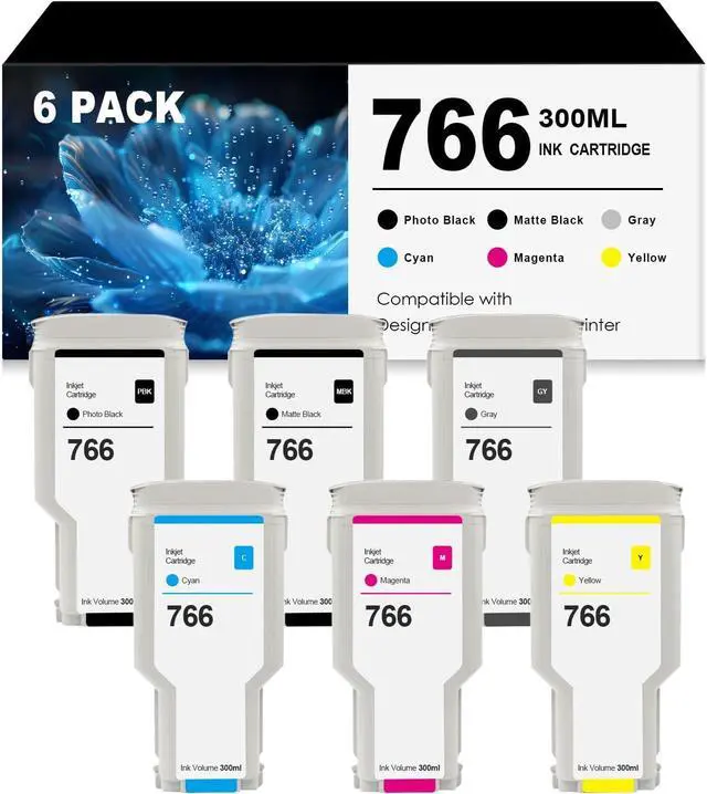 Package Contents: 766 Ink Cartridges(6 Pack: 1 Photo Black,1 Matte Black,1 Gray,1 Cyan,1 Magenta,1 Yellow)