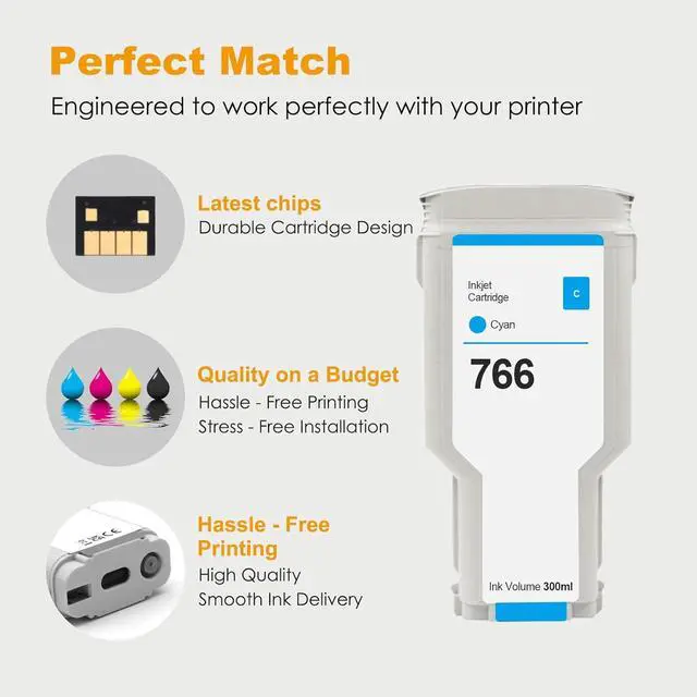 Page Yield: Up to 300ml per 766 ink cartridge, more ink, more pages.
