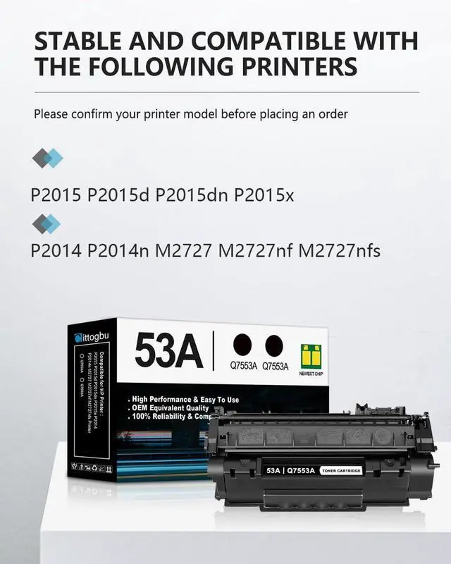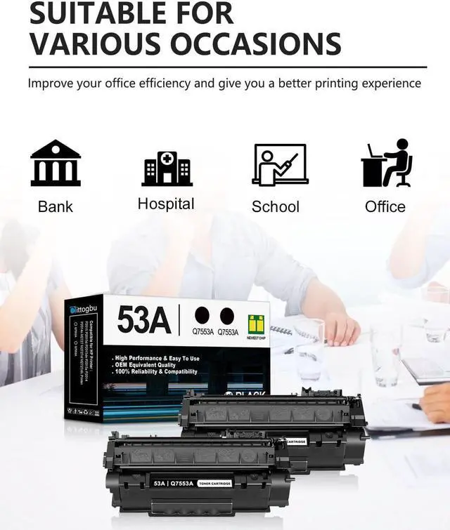 Product in the box: 2 Packs 53A toner cartridge, 53A Q7553A Black toner
