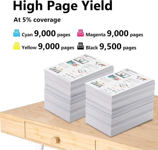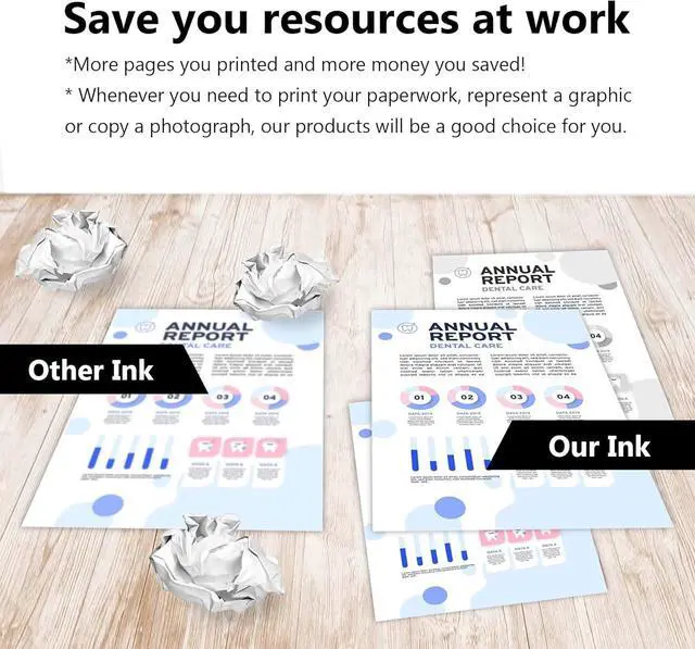 High Page Yiled: 9500 pages per 165ML black ink bottle and 9000 pages per 100ML color ink bottle at 5% coverage