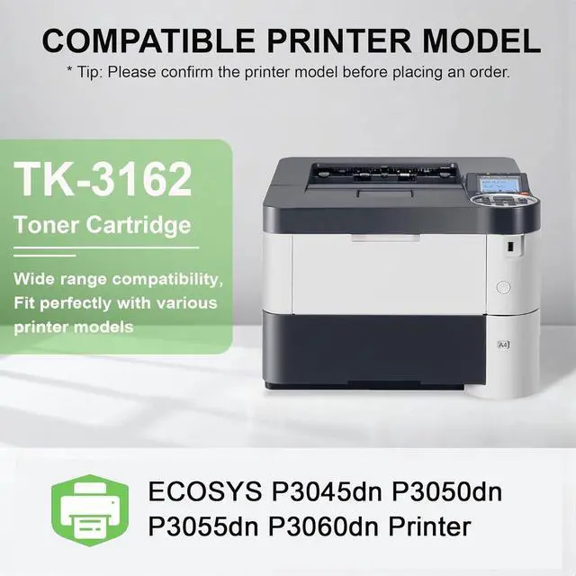 Compatible Printers for TK3162 Toner Cartridge: ECOSYS P3045dn P3050dn P3055dn P3060dn Printer