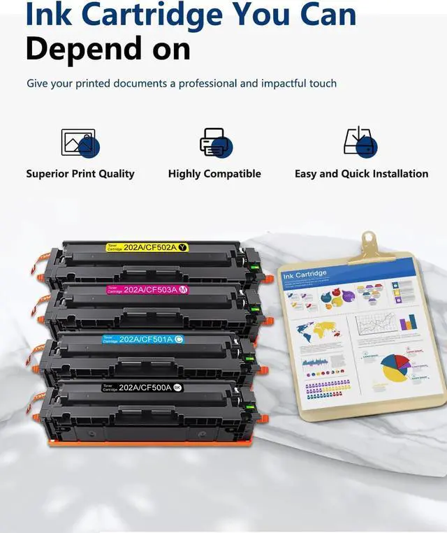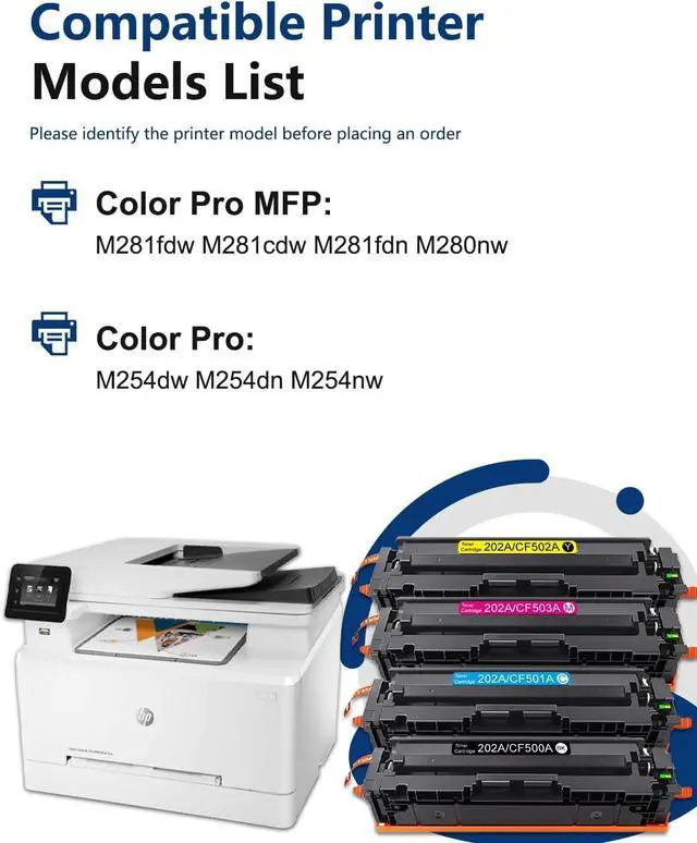 Printer Compatibility:202A High-Yield Toner Cartridge 4-Pack Works with Color Pro MFP M280nw M281fdn M281fdw M281cdw M254nw M254dw M254dn Printer