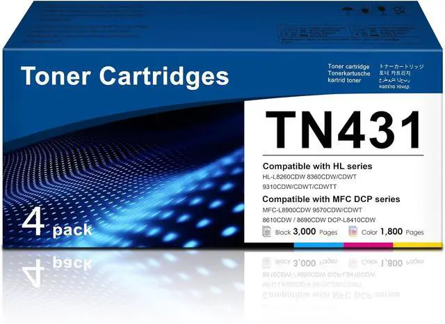 TN431 Toner Cartridges Compatible Models: HL-L8260CDW, HL-L8360CDW, HL-L8360CDWT, MFC-L8610CDW, MFC-L8900CDW; HLL8260CDW, HLL8360CDW, HLL8360CDWT, MFCL8610CDW, MFCL8900CDW; HL L8260CDW, HL L8360CDW, HL L8360CDWT, MFC L8610CDW, MFC L8900CDW
