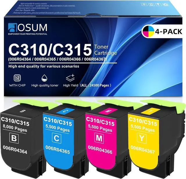 Package Includes : 4-Pack C310 / C315 toner cartridges,1 x Black (006R04364), 1 x Cyan (006R04365), 1 x Magenta (006R04366) 1 x Yellow (006R04367)