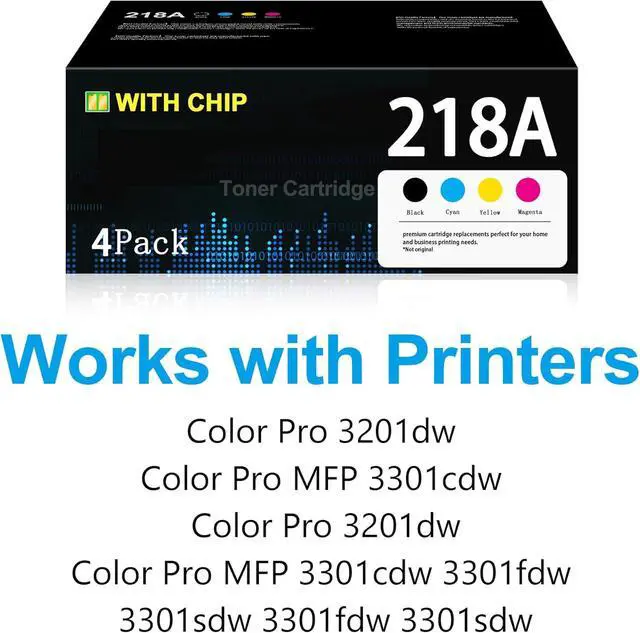 With Chip: The 218A toner cartridge 4 pack contains the chip, automatic printer identification, no manual reset, KCYM encoding ensures stable signal transmission and excellent print quality