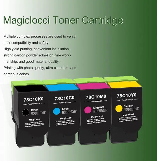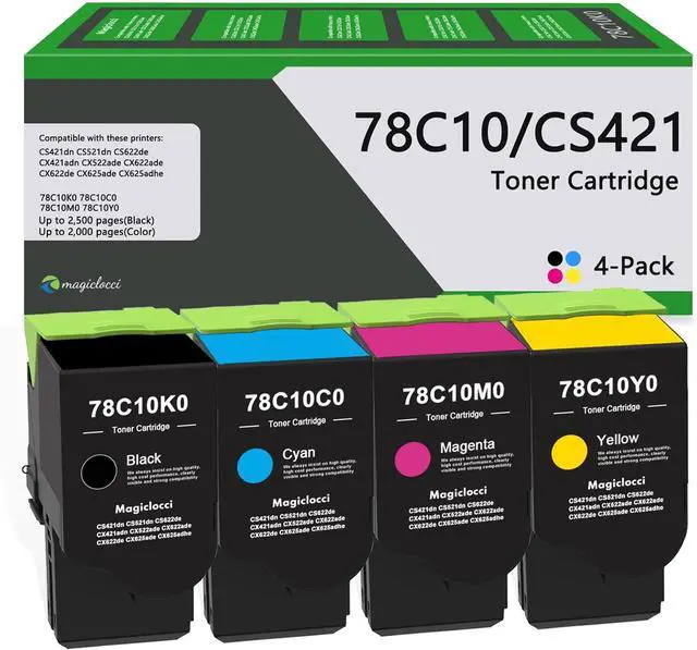 Package Includes: 78C10 High Yield Toner Cartridges 4-Pack(1Black / 1Cyan / 1Magenta / 1Yellow) (78C10K0 78C10C0 78C10M0 78C10Y0)