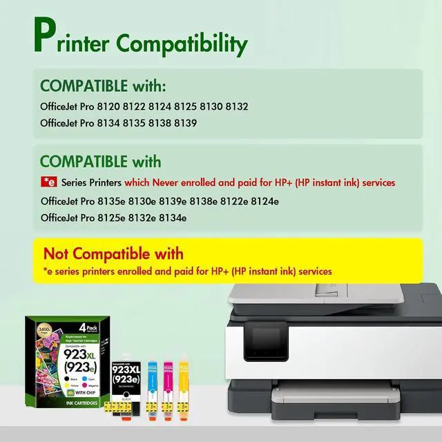 Compatible with *e Series Printers Compatible for HP+ Service: OfficeJet Pro 8135e 8130e 8139e 8138e 8122e 8124e 8125e 8132e 8134e Printer