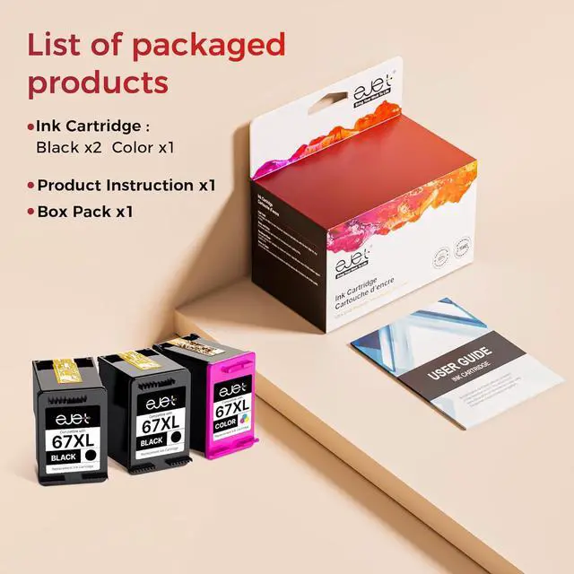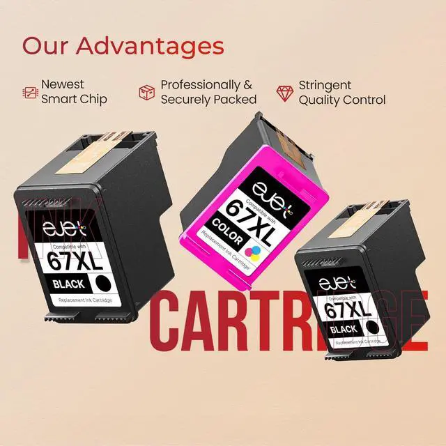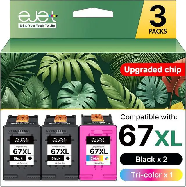 The video showcases the product in use. The video guides you through product setup. The video compares multiple products. The video shows the product being unpacked. Merchant Video 3-Pack 67XL for HP Ink 67 Combo Pack (2 Black 1 Color) ejet for HP 63XL Ink Cartridge combo pack