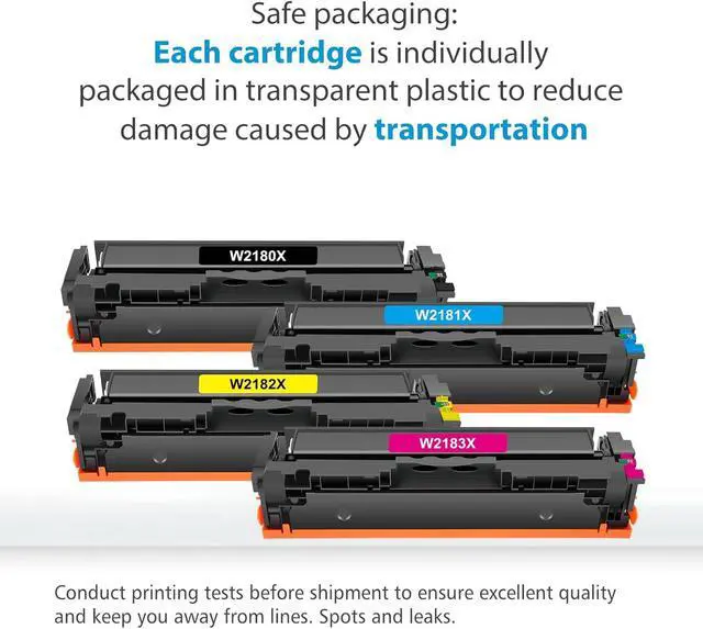 Included: 218X toner cartridges 4 pack with chip ( 1 x W2180X black toner, 1 x W2181X cyan toner, 1 x W2182X yellow toner, 1 x W2183X magenta toner )