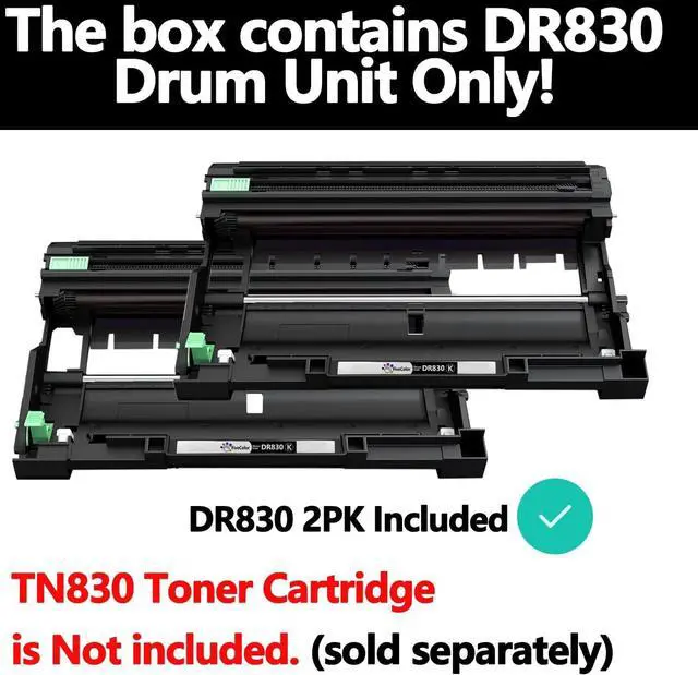Package Content : Replacement for DR830 Drum Unit x 2 Pack 1 x Instruction Guide. NOT contain toner. You need to use with TN830 TN830XL toner cartridge.