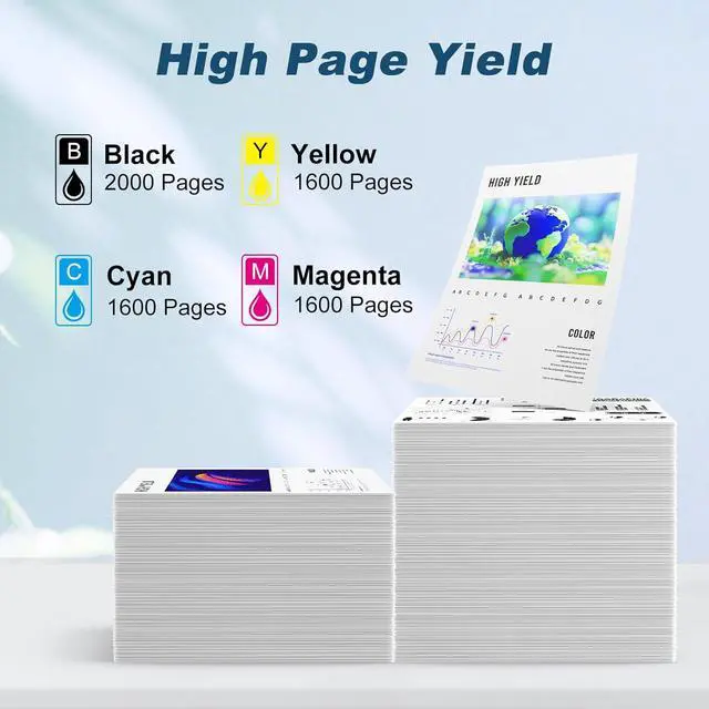 High Page Yield Up to 6,800 Pages: Replacement for hp 962xl black ink cartridge delivers 2,000 pages; each replacement for hp 962xl color ink cartridge hits 1,600 pages for HP ink 962XL color combo pack(5% coverage)