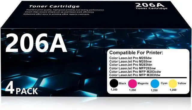 206A Toner Cartridges set 4 pack Compatible Printers: compatible with Color Laserjet Pro MFP M283fdw M283cdw M283fdn M282nw M255nw M255dw Printers toner