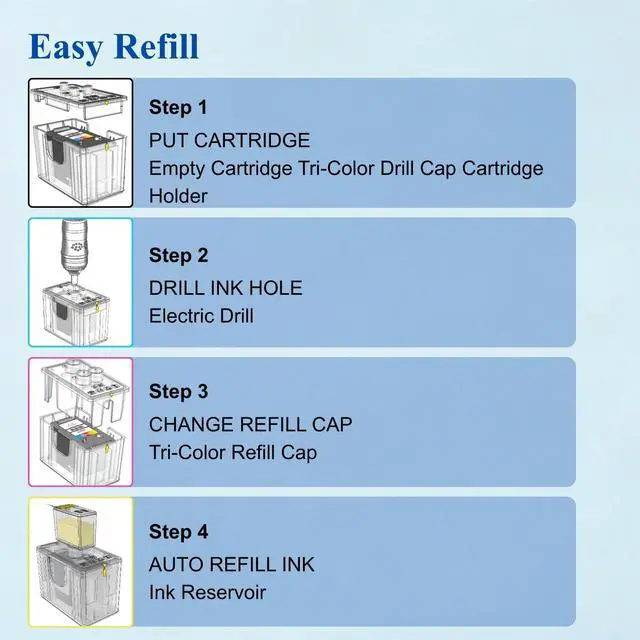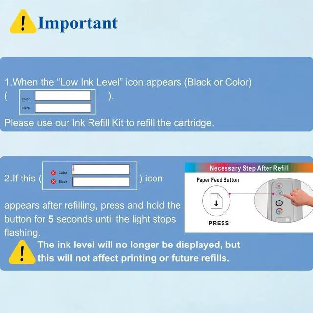 1.Let the cartridge rest 10 minutes after refilling so the ink fully absorbs.