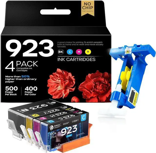 Package Content: 4 packs of 923 cartridges and 1 chip tool. (1x 923 Black, 1x 923 Cyan, 1x 923 Magenta, 1 x 923 Yellow Cartridge)