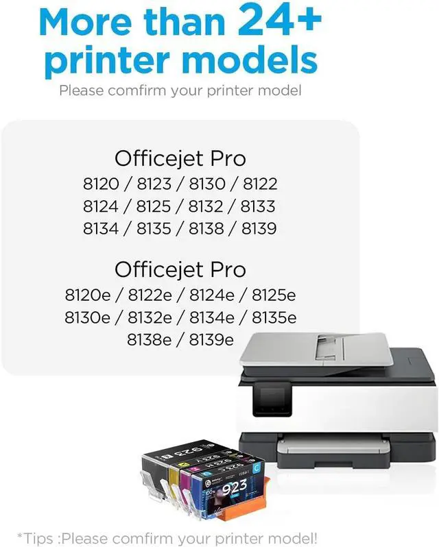 Wide Compatibility: 923 923e Ink cartridge combo pack compatible with HP OfficeJet Pro 8120/8123/8130/8133/8120e/8122e/8124e/8125e/8130e/8132e/8134e/8135e/8138e/8139e printers.