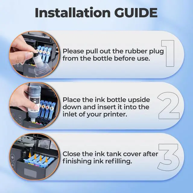Compatible for: ET 2850, ET 3850, ET 4850, ET 4760, ET 3760, ET 2760, ET 3830, ET 3843, ET 2750, ET 4750, ET 3750, ET-2980, ET-2988, ET-3943 printers; for et-2760 ink, et-3760 ink, et-4760 ink, et-2850 ink, et-3850 ink, et-4850 ink, et-15000 ink, et-3830 ink, et-2980 ink, et-2988 ink, et-3943 ink, et-3843 ink; for 2850 ink, 3850 ink, 3843 ink, 4850 ink, 2760 ink, 3760 ink, 4760 ink; for et 3850 ink refill, et 2850 ink refill, et 4850 ink refill, et 2760 ink refill, et 3760 ink refill, et 4760 ink refill, et- 3830 ink refill, et-2850 ink refill bottles