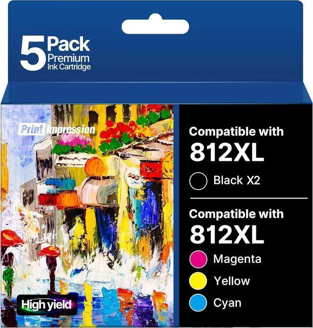 Package Included: Total 5 Pack for Epson 812 XL ink cartridges combo pack (2 Black, 1 Cyan, 1 Magenta, 1 Yellow