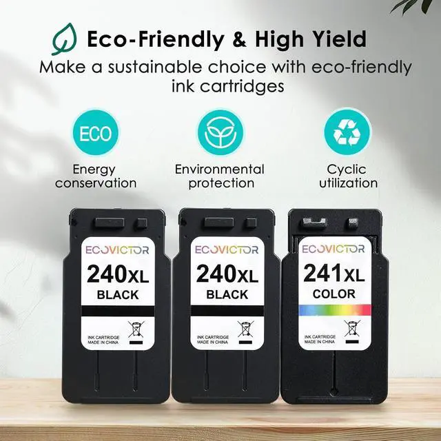 Eco-Friendly Printing Excellence: EcoVictor 240xl 241xl ink cartridges for canon printers are made from eco-friendly materials and the latest technology to deliver greater efficiency, higher printing precision, and reliable accuracy. Meeting FSC standards, these cartridges support sustainability. The 240xl black ink cartridge prints sharp, clear black text for your documents, and the 241xl color ink cartridge produces vibrant, natural color photos.