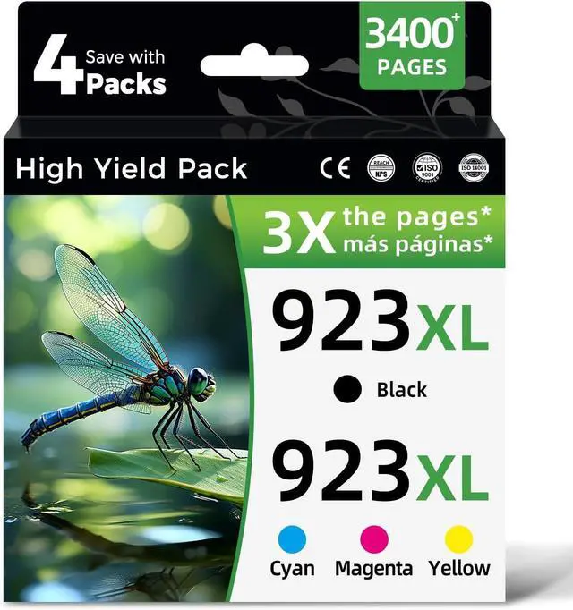 Package contents:923 ink cartridges black and color 4 pack of printer ink 923 --1x 923xl black, 1x 923xl cyan, 1x 923xl magenta, 1x 923xl yellow and a user guide.