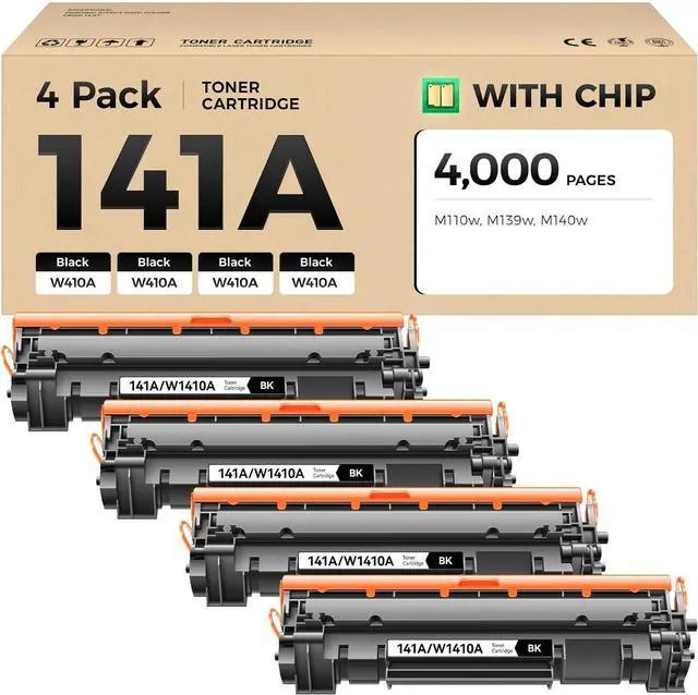 With Chip: Compatible Replacement for HP 141A W1410A toner cartridges 4 pack (with Chip), No need to remove and install old chip on 141A toner cartridges