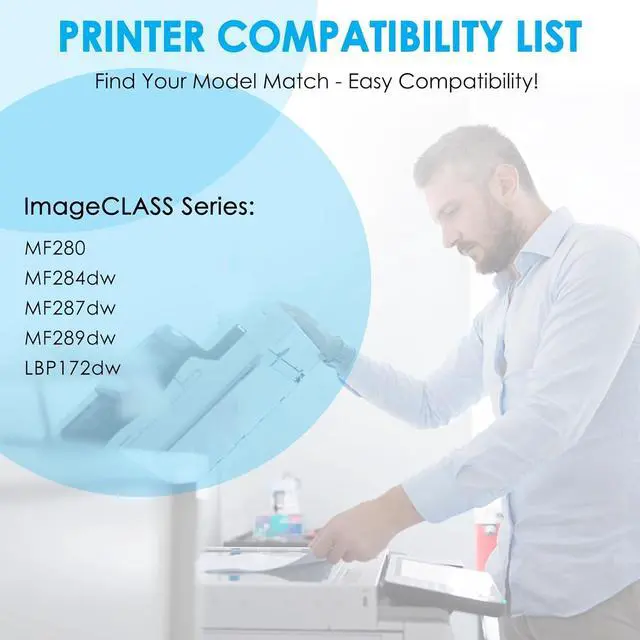 Compatible Printers: Works seamlessly with Canon ImageCLASS MF280, MF284dw, MF287dw, MF289dw, and LBP172dw series printers