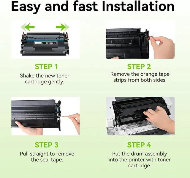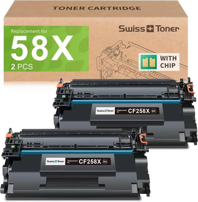Pre-Installed Smart Chips: Easy installation, high recognition rate, quick adaptation, experience seamless link with HP258X Toner Cartridges 2 Pack. Swiss toner 58X toner cartridges seamlessly recognized quickly and work well by your printer, completely comparable to the originals.