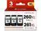 Package Includes: 3 Pack for Canon 260XL and 261XL ink cartridgs includes 2x PG-260XL black ink cartridge, 1x CL-261XL color ink cartridge, 1x user manual
