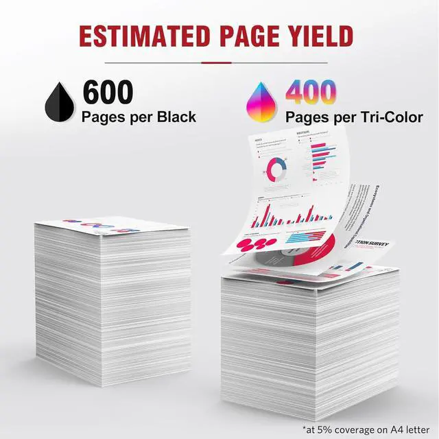 High Page Yield: 600 Pages for 260XL black ink cartridge, 400 Pages for 261XL color ink cartridge At 5% coverage