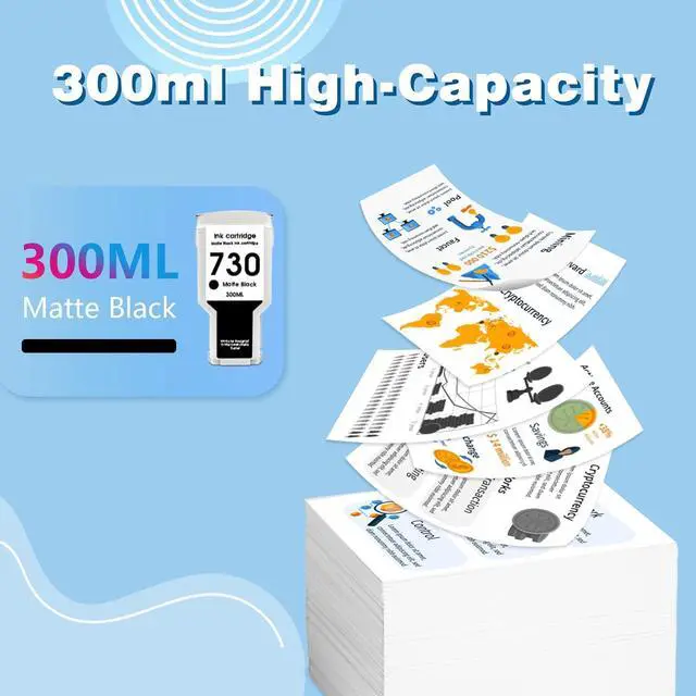 Upgraded Chips: 730 Ink Cartridges 300ml (1-Packequipped with the latest upgraded chips to ensure efficient compatibility, fast identification to improve efficiency and stable printing for smooth work