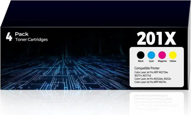 Compatible Printer: The 201X toner cartridges 4 Pack high yield compatible with HP Color Laser Jet Pro MFP M277dw M277c6 M277n, Color Laser Jet Pro M252dw M252n printers.