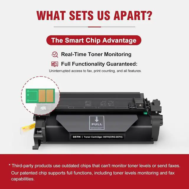 What Sets Us Apart?: ALLWORK 057H 057 Black High Capacity toners feature the latest advanced patented chip, ensuring easy printer recognition. Our patented chip supports full functions, including Real-Time Toner Levels Monitoring and Fax Capabilities.