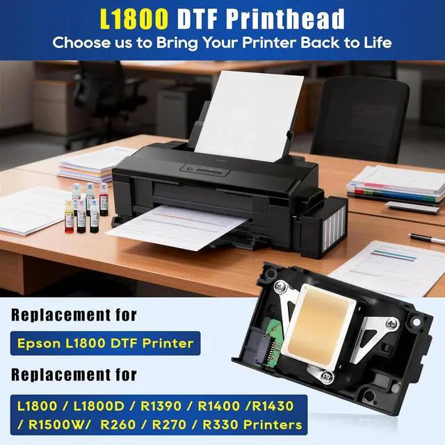 L1800 DTF Printhead Replacement for Epson L1800 DTF Printer - High-Accuracy 6-Color Print Head Compatible with L1800/L1800D/R1390/R1400/R1430/R1500W/R260/R270/R330, Easy to Install & Clog-Resistant Design