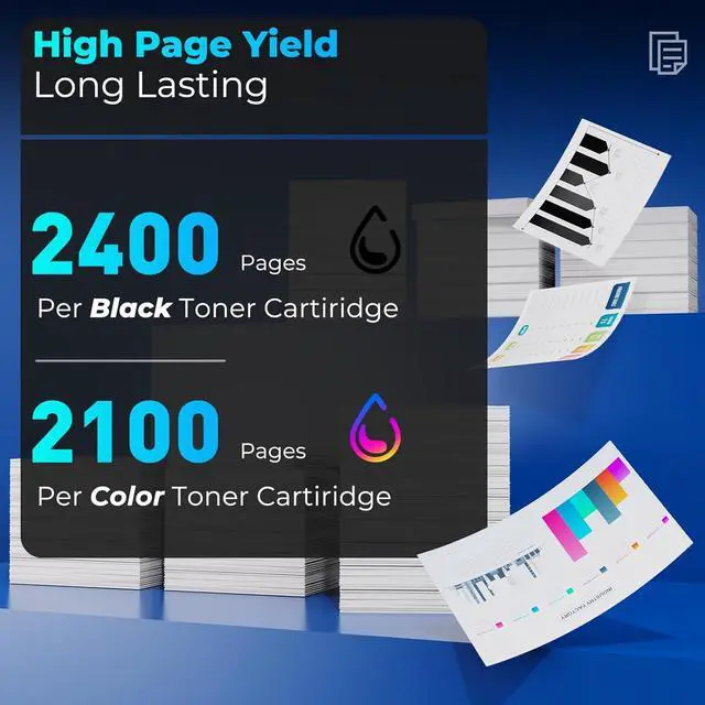 Page Yield: Up to 2,400 pages for 414a black toner cartridge, up to 2,100 pages per 414a color toner cartridges (cyan magenta yellow) at 5% coverage of letter/A4 paper. Ideal replacement for mfp m479fdw toner cartridges.